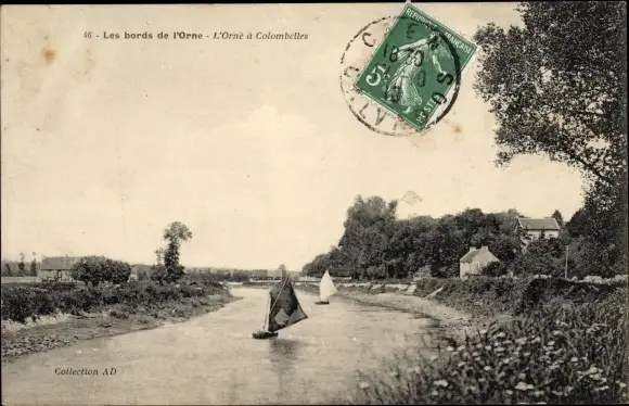 Ak Colombelles Calvados, Les bords de l'Orne, Segelboote