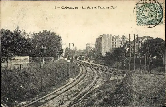 Ak Colombes Hauts de Seine, La Gare und Avenue Note