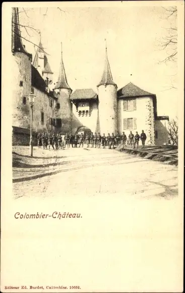 Ak Colombier Kanton Neuenburg Schweiz, Chateau, Soldaten