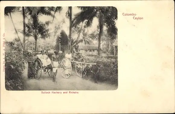 Ak Colombo Ceylon Sri Lanka, Bullock Hackery und Richsha