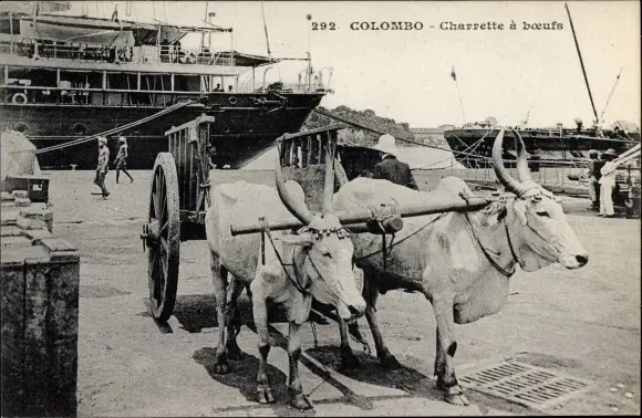Ak Colombo Ceylon Sri Lanka, Charrette a boeufs