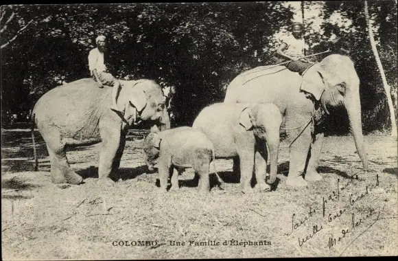 Ak Colombo Ceylon Sri Lanka, Elefantenfamilie