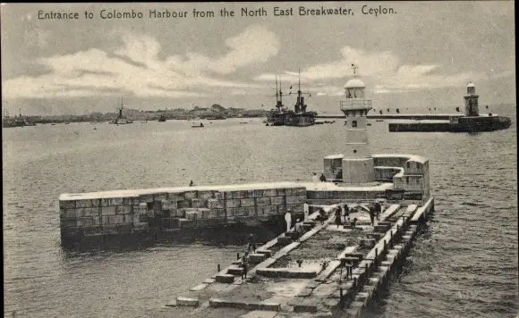 Ak Colombo Ceylon Sri Lanka, Harbour, Leuchtturm
