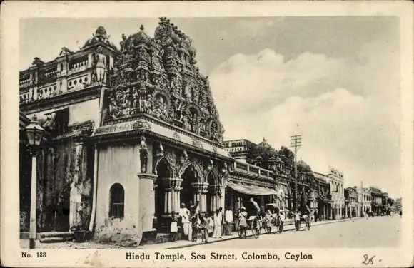 Ak Colombo Ceylon Sri Lanka, Hindu-Tempel, Sea Street, Rickscha
