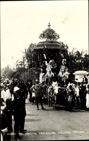Ak Colombo Ceylon Sri Lanka, Indian Vel Festival Procession, bullock cart