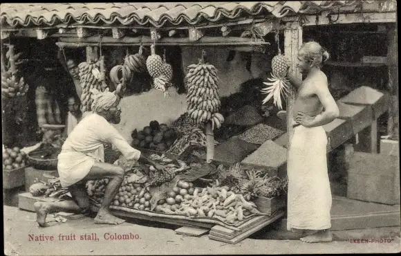 Ak Colombo Ceylon Sri Lanka, Native fruit stall, Früchte, Markt