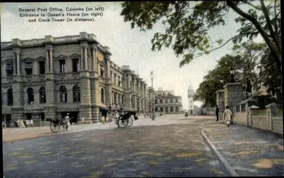 Ak Colombo Ceylon Sri Lanka, Queens House, General Post Office, Glockenturm