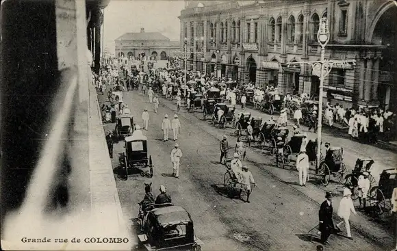 Ak Colombo Ceylon Sri Lanka, Straße mit Kutschen, Menschenmenge, Gebäude