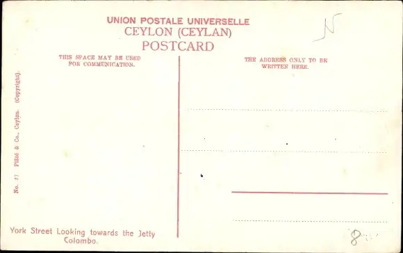 Ak Colombo Ceylon Sri Lanka, York Street mit Blick auf den Jetty Colombo