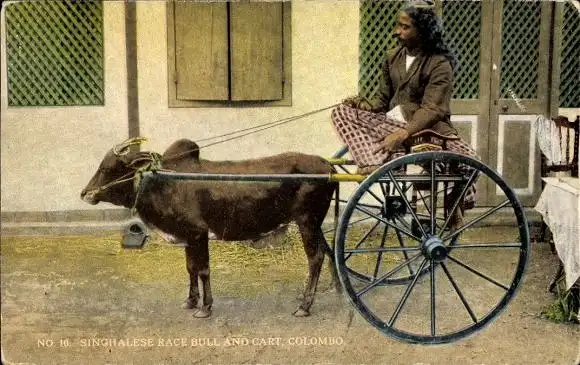 Ak Colombo, singhalesischer Rassebulle und Karren