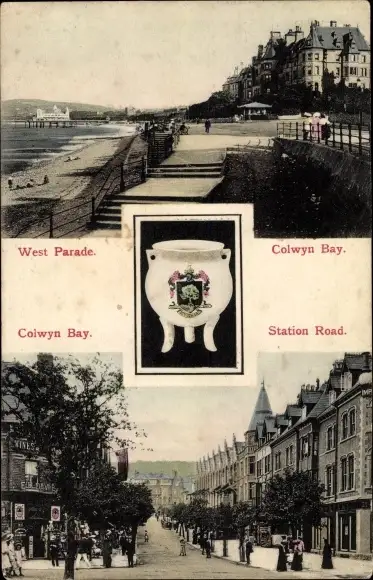 Ak Colwyn Bay Wales, West Parade, Station Road