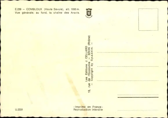 Ak Combloux Haute Savoie, Vue Générale: au fond, la chaine des Aravis