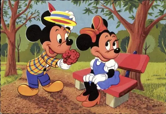 Ak Comic, Walt Disney, Mickey und Minnie Maus