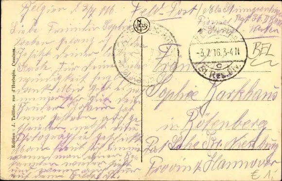 Zustand, siehe Scan, gelaufen, 1916 - ca 14 cm X 9 cm