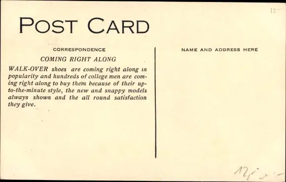 Ak Coming right along, Walk Over Shoes, Reklame, Automobil