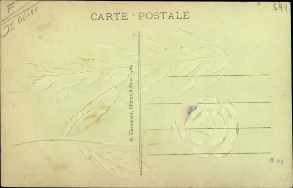 ungelaufen, fleckig, rückseitig kunstvolle Einkerbungen, sonst guter Zustand