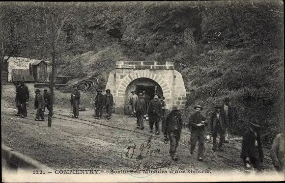 Ak Commentry Allier, Sortie des Mineurs d'une Galerie
