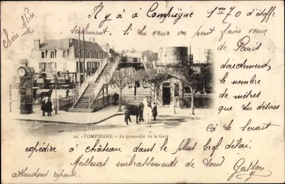 Ak Compiègne Oise, Die Fußgängerbrücke des Bahnhofs