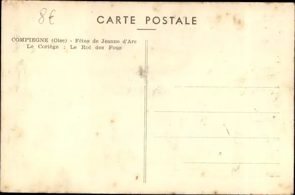 Ak Compiègne Oise, Fest zu Ehren von Jeanne d'Arc, Festzug, König der Narren