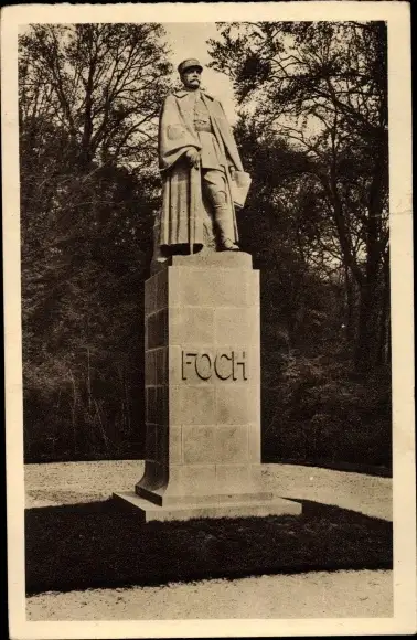Ak Compiègne Oise, Foret, Clairiere de l'Armistice, Statue du Marechal Foch