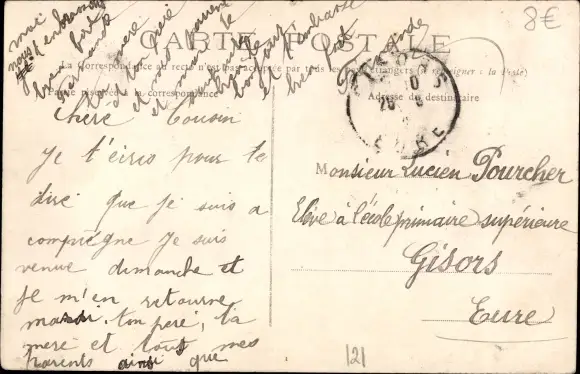 Zustand, siehe Scan, gelaufen, 1909 - ca 14 cm X 9 cm
