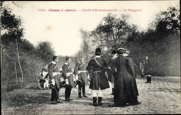 Ak Compiègne Oise, Le Rapport, Forêt d'Ermenonville, Chasses à Courre