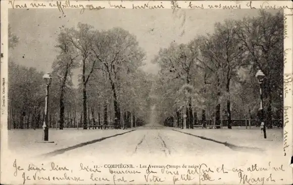 Ak Compiègne Oise, Les Avenues, Schnee