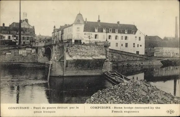 Ak Compiègne Oise, Pont de pierre detruit par le genie francais