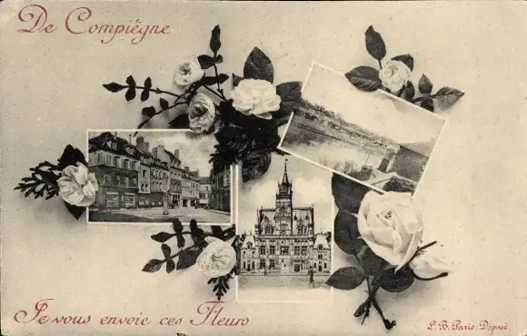 Ak Compiègne Oise, Rathaus, Fluss, Häuser