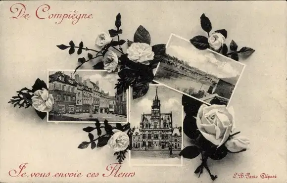 Ak Compiègne Oise, Rathaus, Fluss, Häuser
