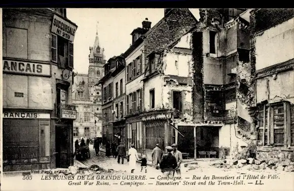 Ak Compiègne Oise, Rue des Bonnetiers und Rathaus