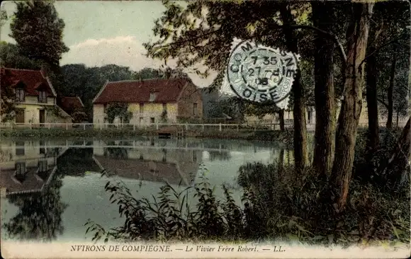 Ak Compiègne Oise, Stillleben am Wasser, ruhige Landschaft, charmante Häuser