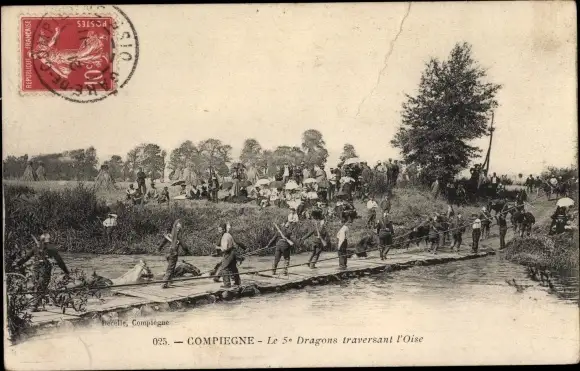 Ak Compiègne Oise, die 5. Dragoner überqueren den Fluss
