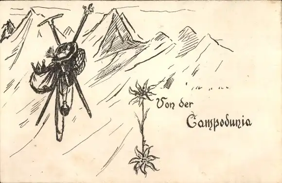 Ak Compodunia, Wanderer-Rucksack, Berge, Edelweiß