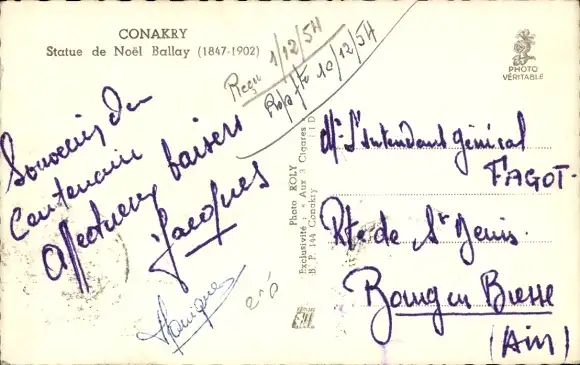 Ak Conakry Conakry Guinea, Statue de Noel Ballay