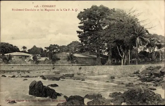 Ak Conakry Konakry Guinea, Boulevard Circulaire et les Magasins de la Cie FAO