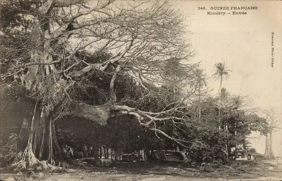 Ak Conakry Konakry Guinea, Wohnhäuser, Bäume