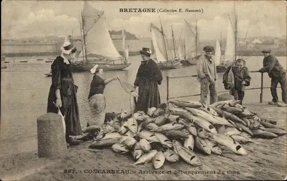 Ak Concarneau Finistère, Arrivage de debarquement du thon