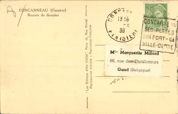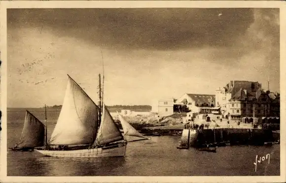 Ak Concarneau Finistère, Hafen, Fischerboot bei der Rückkehr