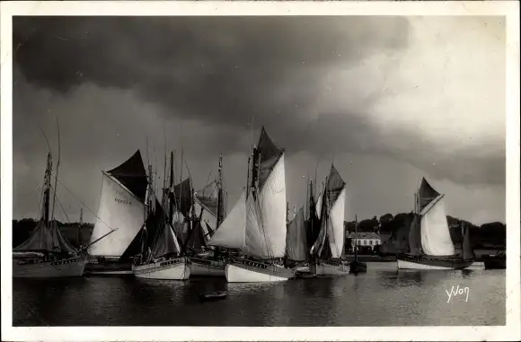 Ak Concarneau Finistère, Thonniers au mouillage dans l'arrière port