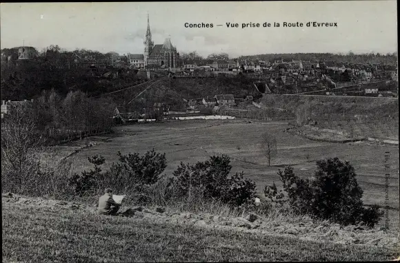Ak Conches Eure, Vue prise de la Route d'Evreux
