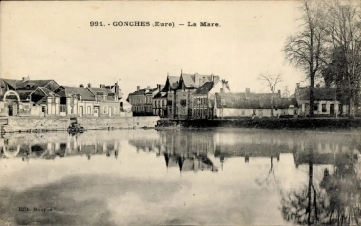 Ak Conches en Ouche Eure, bild eines Gewässers, Häuserzeile, Spiegelung im Wasser