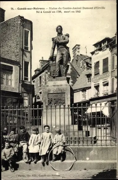 Ak Condé sur Noireau Calvados, Statue du Contre Amiral Dumont d'Urville