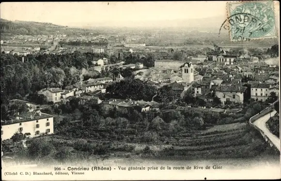 Ak Condrieu Rhône, Gesamtansicht aufgenommen Rive de Gier