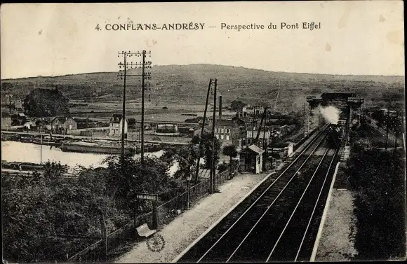 Ak Conflans Andrésy Yvelines, Perspective du Pont Eiffel