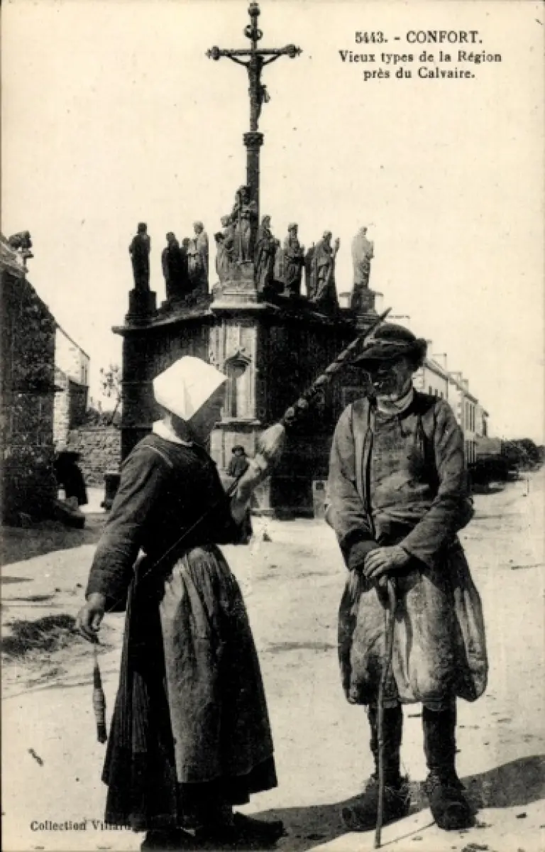 Ak Confort Finistere, Vieux Types de la Region pres du Calvaire