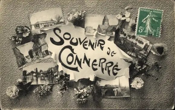 Ak Connerré Sarthe, Kirche, See, Souvenir, Blumen