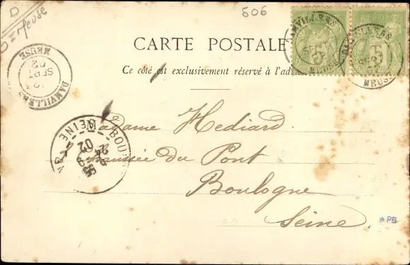 gelaufen 1902, fleckig, Knickspur links, sonst guter Zustand