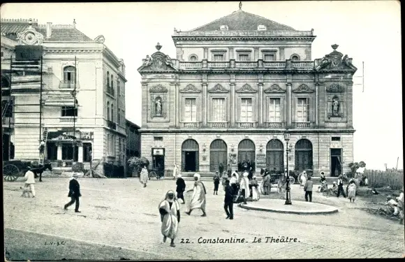 Ak Constantine Algerien, Le Theatre, Straßenpartie mit Blick auf Theater