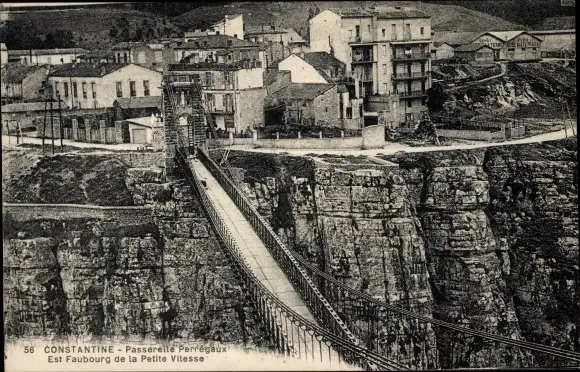 Ak Constantine Algerien, Passerelle Perregaux Est Faubourg de la Petite Vitesse, Hängebrücke